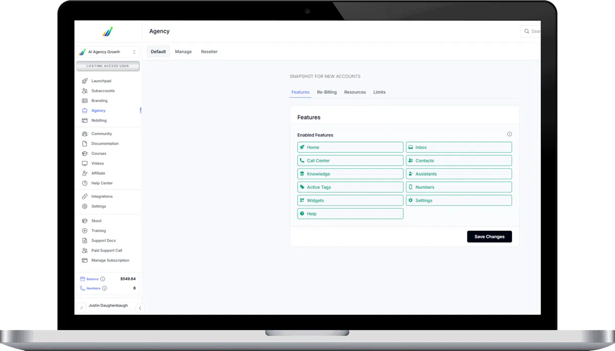 Best for agencies and SaaS owners ready to scale with unlimited AI accounts, allowing them to deploy AI across as many client accounts as they want.