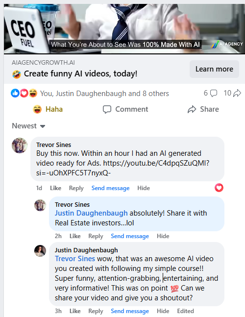 “I created my first AI video in under an hour and it actually got leads! ” -Jason L.